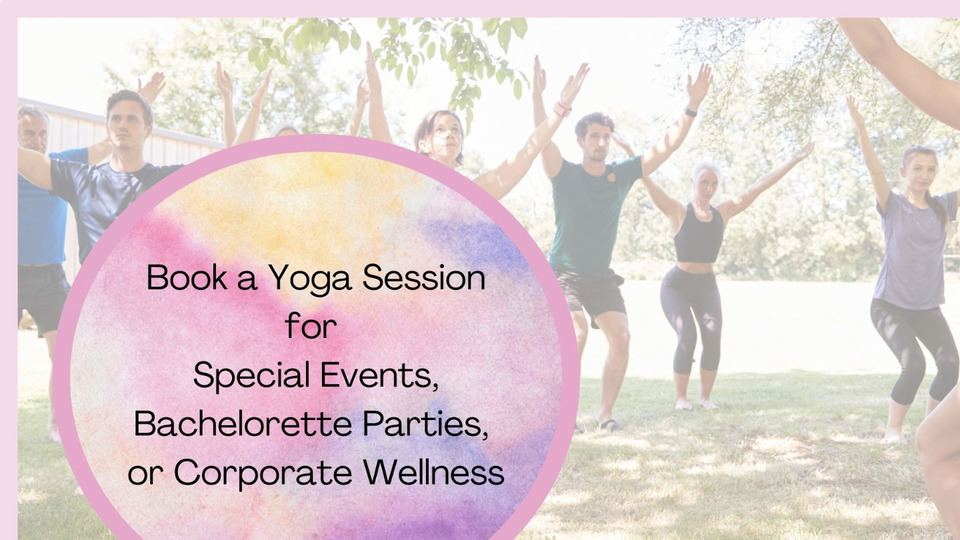 Book a yoga session for your special event. Includes up to one hour of all level yoga for a group.
